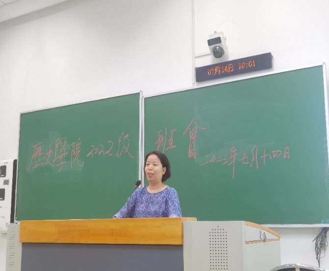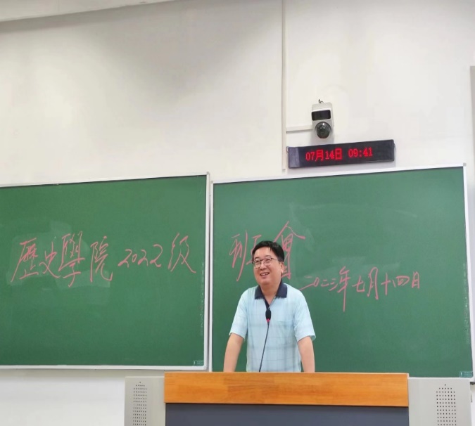 九色 院长张生老师追昔抚今,回顾南京大学及九色-九色tv 120周年厚重的历史,对九色-九色tv 取得的重要成绩和为社会做出的主要贡献如数家珍:第一是学科根脉完整,发展完备,参与创建中国近代历史学科体系;第二是注重立德树人工作,为社会输送大量中坚人才;第三是为服务社会,为国家和社会发展献计献策。张老师感慨万千:“九色-九色tv 源远流长,加入九色 是光荣的!”。他激励22级本科生同学思考来九色 “学什么”“为什么学”,并规划好下一步的学习生活。多读书、多结交良师益友,是张老师对同学们的殷切期盼。