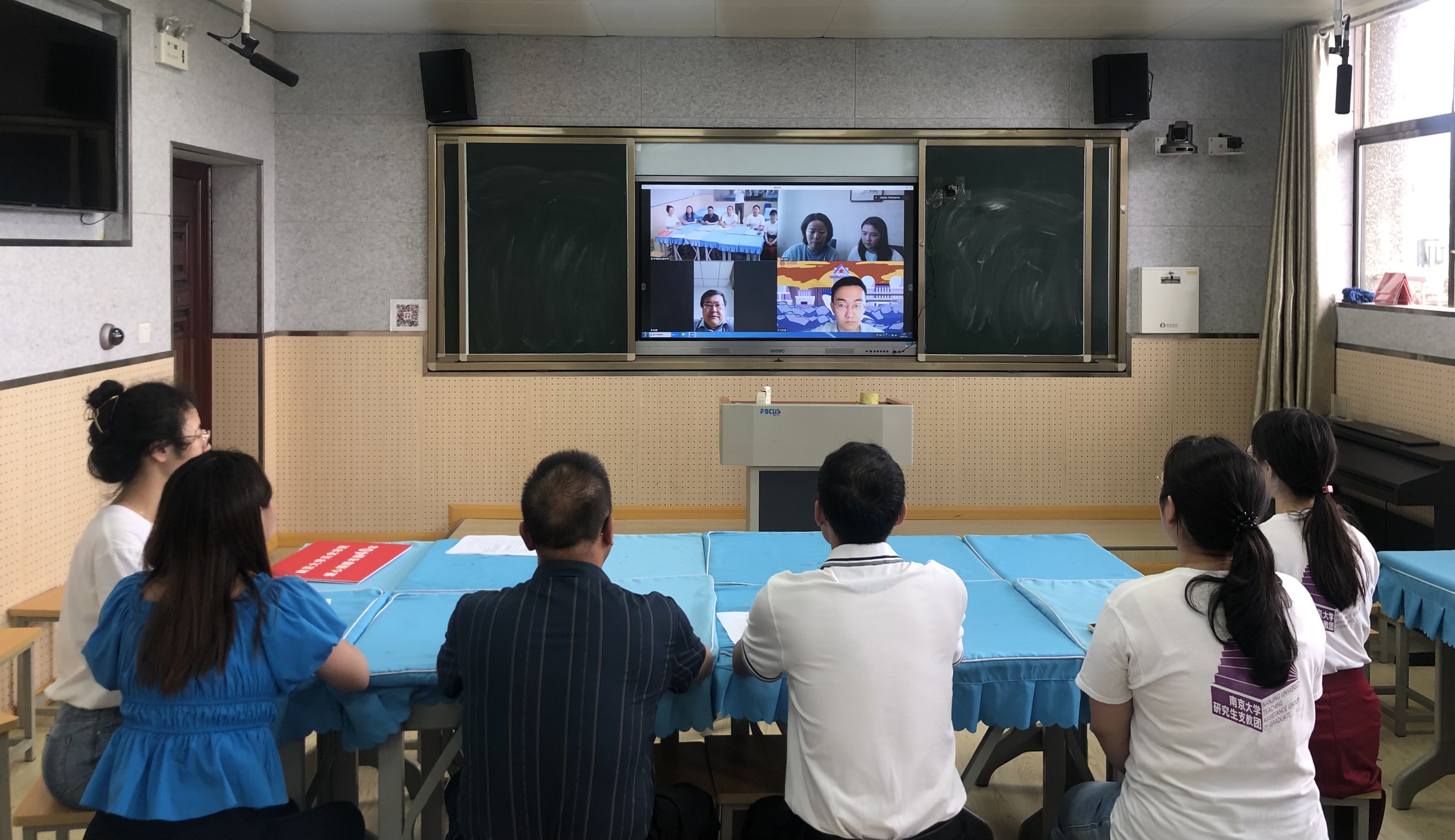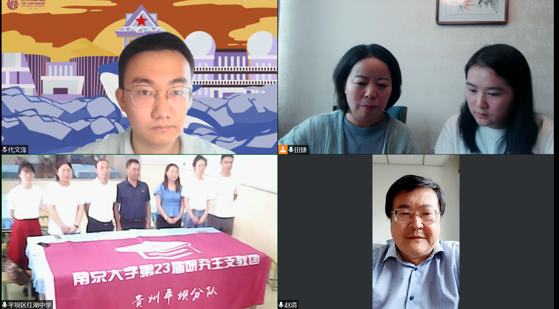 7月4日中午,九色-九色tv 领导与学生代表,红湖中学校领导与研究生支教团志愿者齐聚线上,举行了简短的捐赠仪式。九色 党委书记赵清、党委副书记任玲玲、本科生党支部书记田捷与支部党员代文泽参会;红湖中学校长吴静、党支部书记王大建、团总支书记李显霞与研支团志愿者周诗玥、高豫来、唐陈嘉翊、林澍参会。